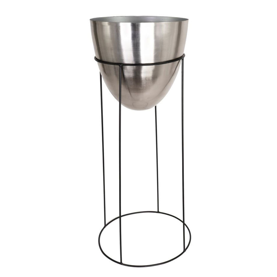 Pot de fleurs en poudre d'argent de qualité supérieure avec support noir pour décoration intérieure/extérieure, jardin, maison, sol, fait main