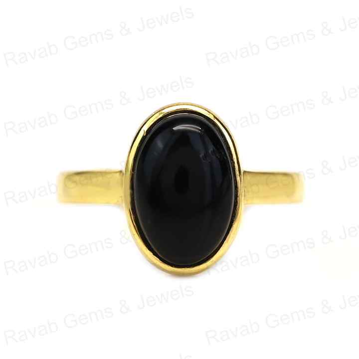 Product Name:Natural Black Onyx Sterling Silver Gold Plated Statement Ring