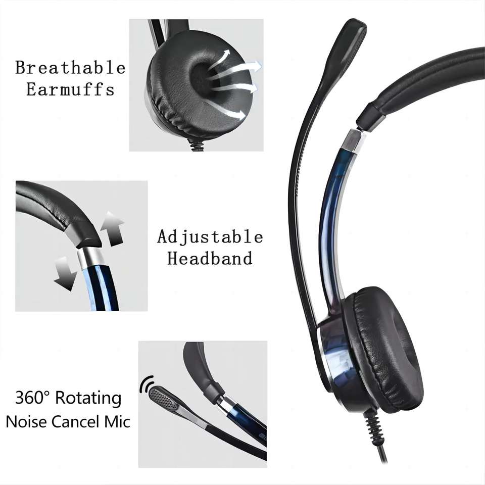 Casque filaire USB-A/C stéréo de qualité supérieure pour centre d'appels, avec microphone à perche et suppression du bruit, idéal pour le bureau