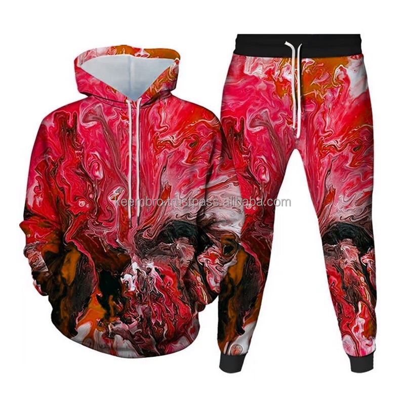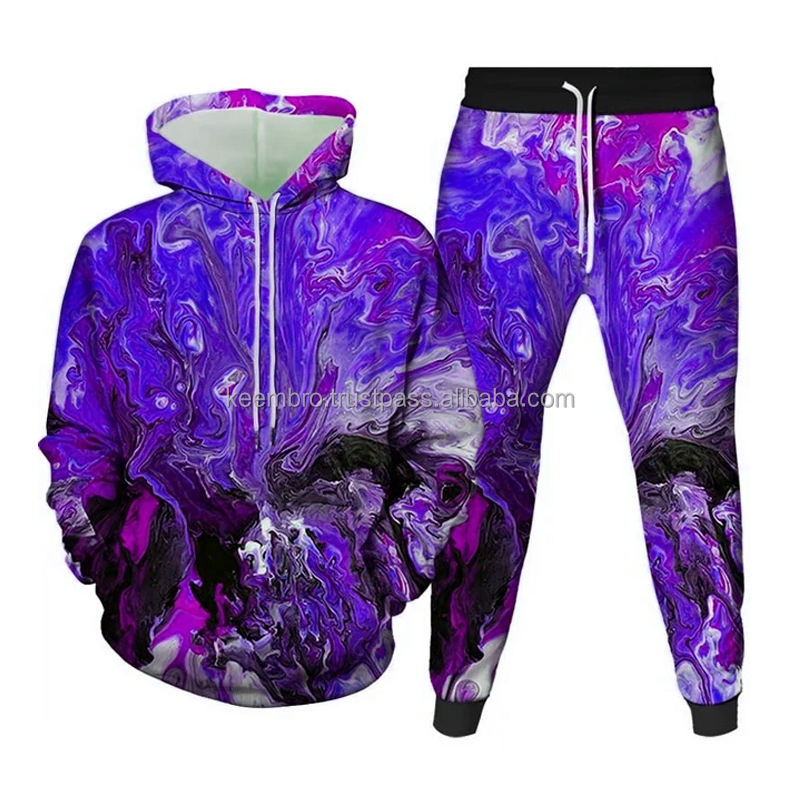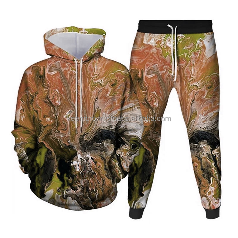 Ensemble de vêtements d'entraînement de jogging imprimés numériques 3D épais et colorés de meilleure qualité avec col à capuche pour la course d'hiver