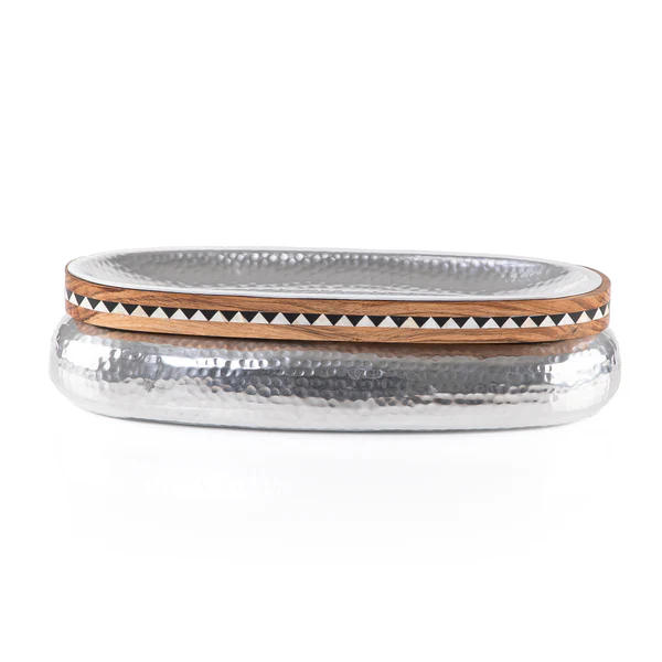 Plateau en métal artisanal de qualité supérieure avec support en bois pour la décoration festive du Ramadan, disponible à la vente