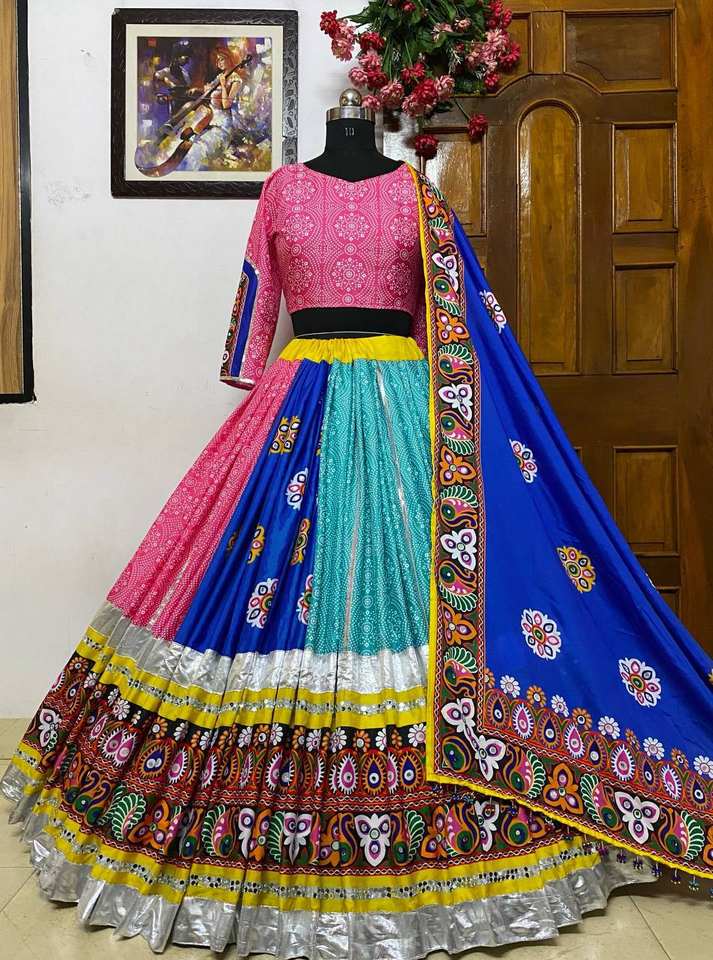 Nom du produit:Beurre Soie Impression Numérique & Miroir Travail Lehenga Choli Dupatta