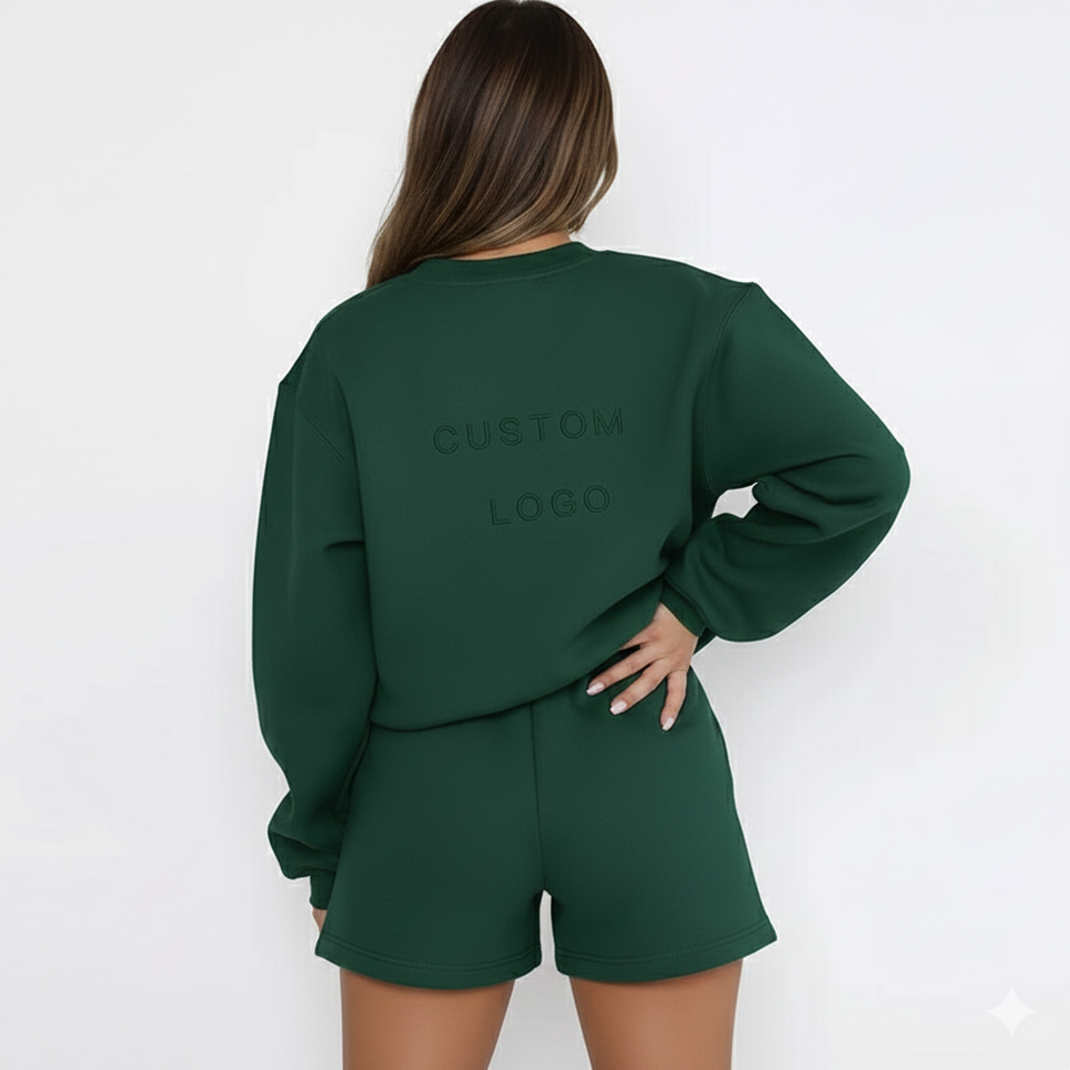 Ensemble de survêtement deux pièces de qualité supérieure pour femme, sweat-shirt à col rond, survêtements personnalisés, shorts, ensemble de deux shorts