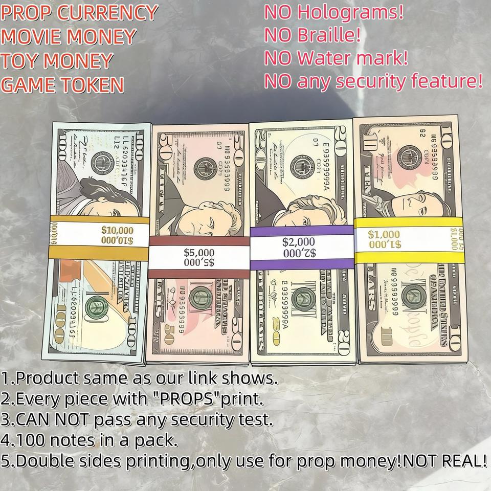 Billets de banque factices en dollars américains de qualité supérieure, billets de 20, 50, 100 dollars réalistes, argent factice pour les effets de cinéma, les films vidéo