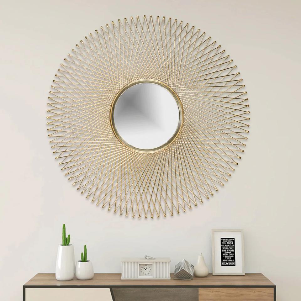 Miroir mural décoratif de haute qualité au design unique, miroir en métal doré pour salle de bain au meilleur prix.