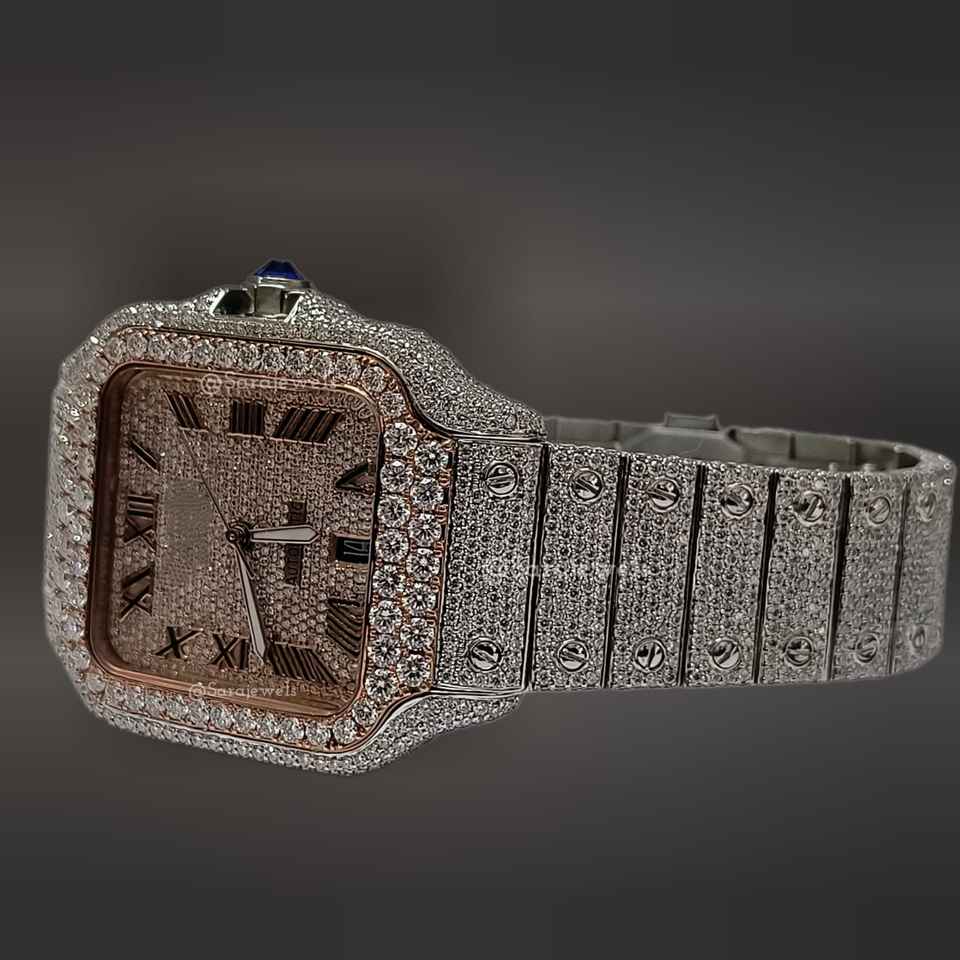 Meilleure qualité VVS Moissanite diamant entièrement glacé Hip Hop montre en acier inoxydable cadran carré luxe personnalisé Moissanite clouté