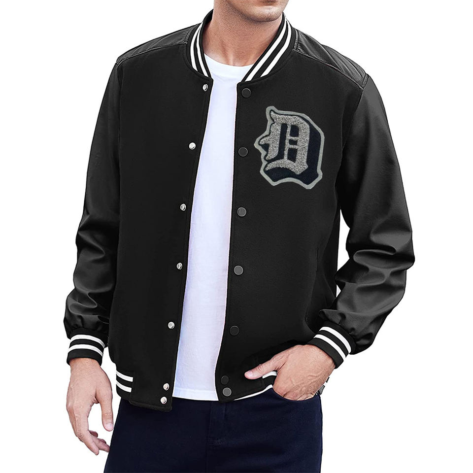 Veste universitaire de qualité supérieure pour hommes, couleur noire et manches en cuir, corps en laine, veste universitaire confortable pour le baseball