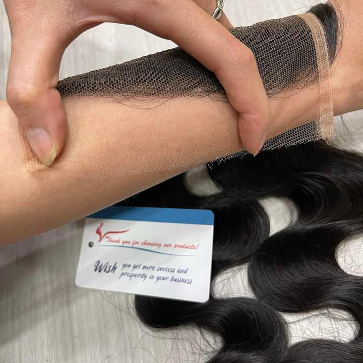 Meilleure qualité vietnamien cuticule aligné vierge cheveux humains mince HD Transparent dentelle frontale fermeture génie trame
