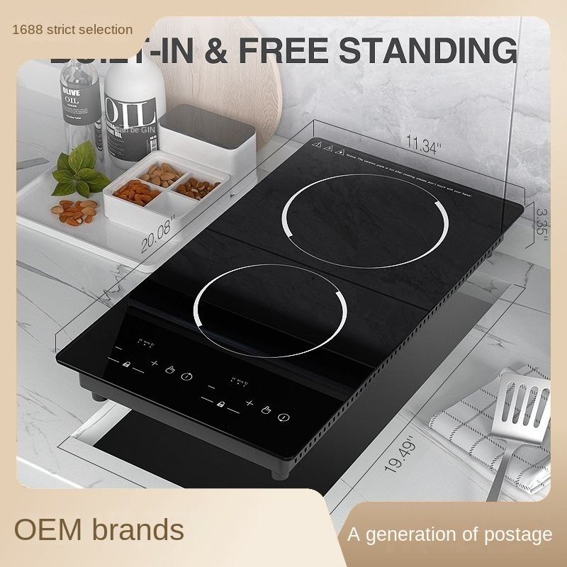 Plaque de cuisson en céramique de qualité supérieure, personnalisée, 2 brûleurs, en verre noir, électrique, pour usage domestique et fêtes, compatible induction, gaz, solaire
