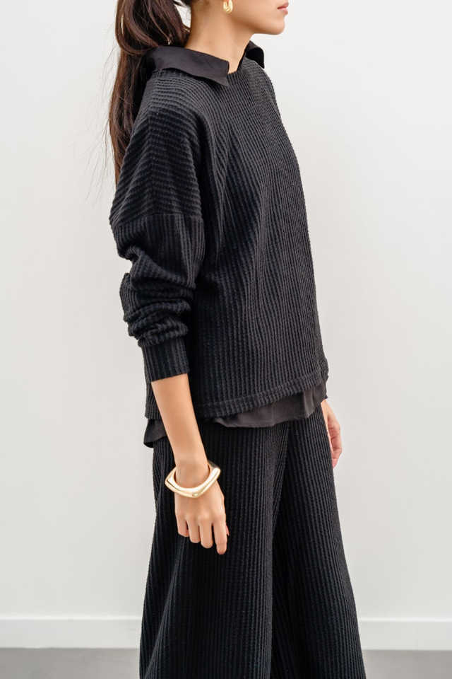 Best Quality Women Black Ribbed Knit Sweatshirt Breathable Streetwear Wholesale Custom Printed Sweatshirts Made In Pakistan
