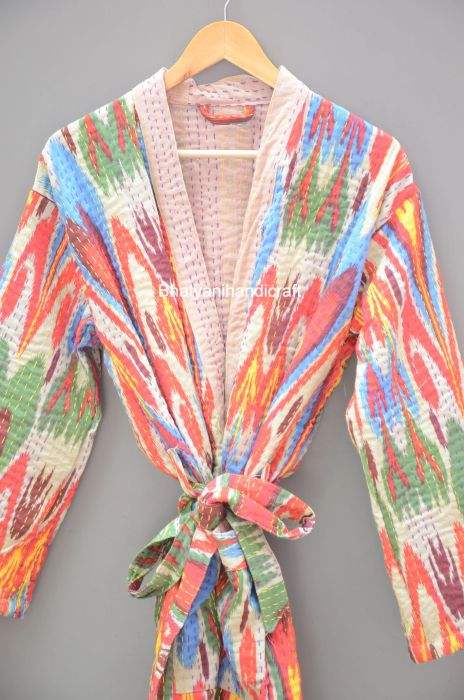 Robe de chambre matelassée à manches longues en coton Kantha de meilleure qualité pour femmes