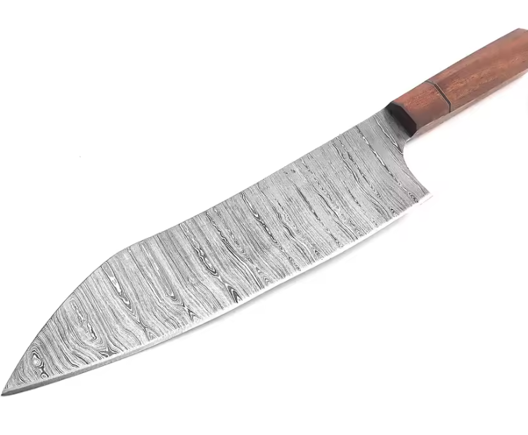 Custom Handmade Damascus Steel Chef Knife with Leather Sheath Dishwasher Safe Ambidextrous Extra Sharp Durable Modern Design