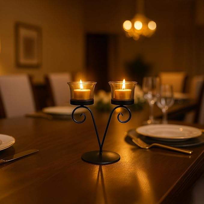 Meilleure vente, bougeoir en métal haut de gamme, design élégant à 2 bras, support de bougie pour Noël, Pâques, anniversaire