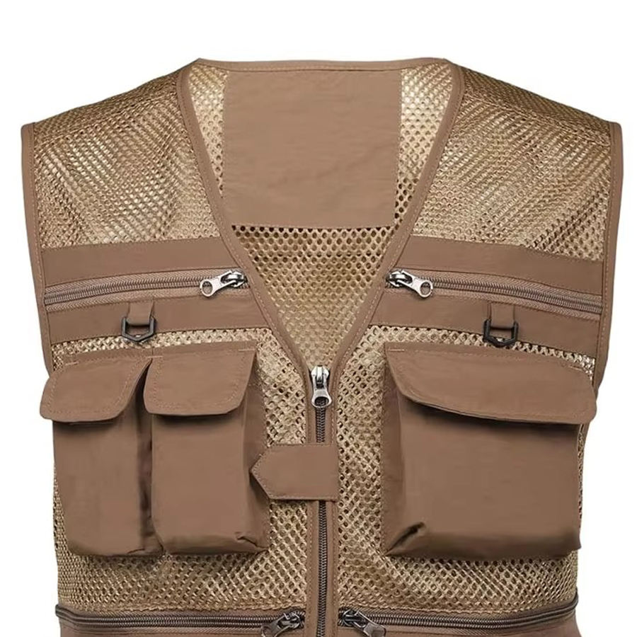 Meilleure Vente Gilet de Pêche Léger Respirant Hiver Multi-Poches Manches Longues Toile Polyester Décontracté Logo Personnalisé Extérieur