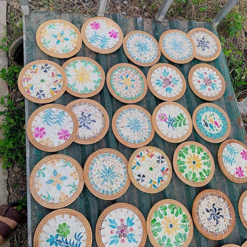 Meilleure vente ronde rotin napperon caboteur mosaïque perle plateau fait main produit artisanal fabriqué au Viet Nam