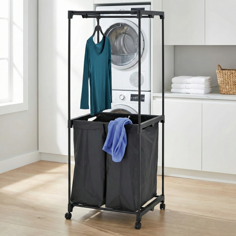 Meilleure vente en gros panier à linge moderne en métal chariot cintres Double ménage stockage vêtements organisateur MIT Taiwan garde-robe