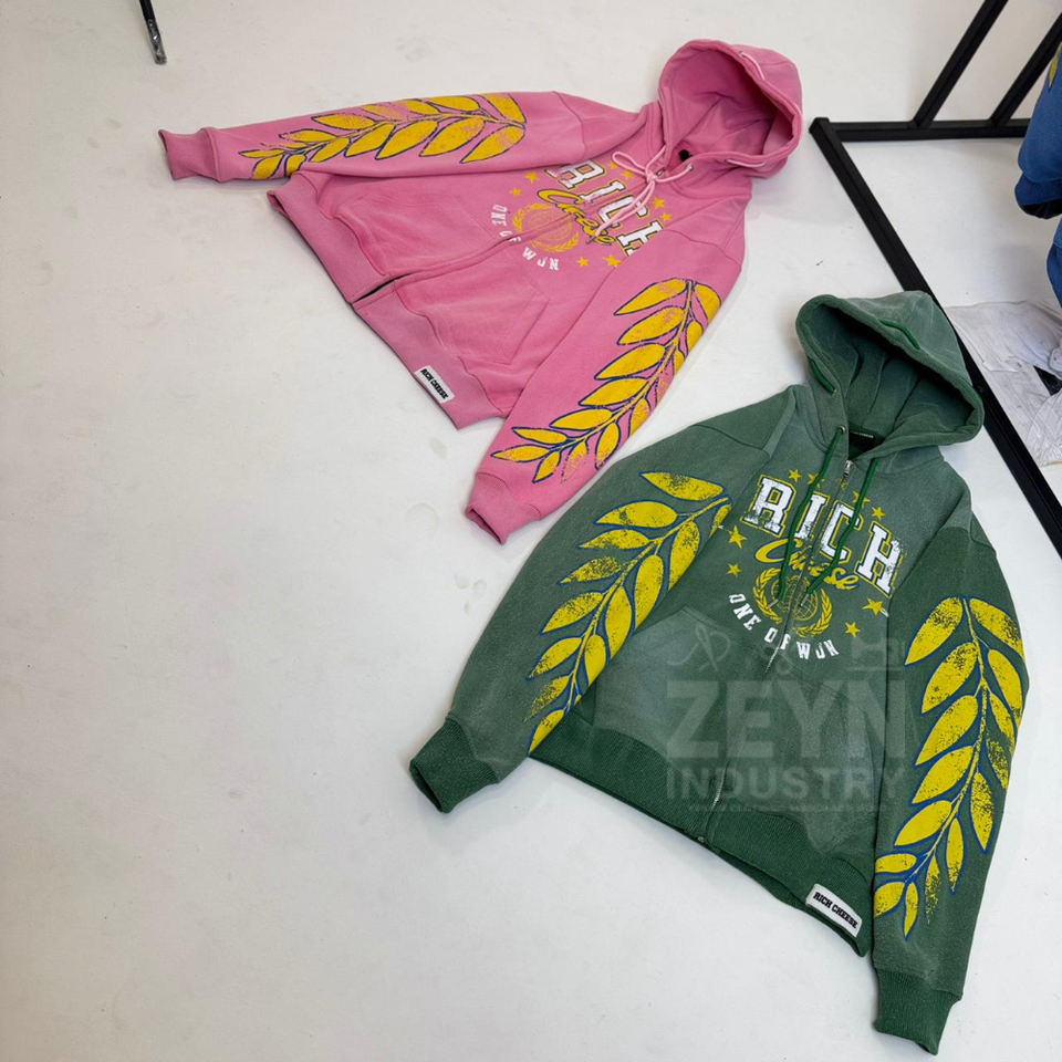 Techniques:Autre, Brodé, Imprimé, Patchwork, Lavé, Teint clair, Cravate teinte, Puff Imprimer, Flocage, Rinçage, Broderie flocage, Broderie à paillettes, Délavé, Jacquard, Lavage acide