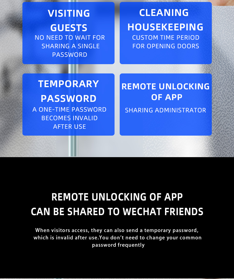 Meilleure vente Serrure de porte intelligente Wi-Fi à cadre anti-effraction pour porte battante en verre avec alarme basse consommation F15