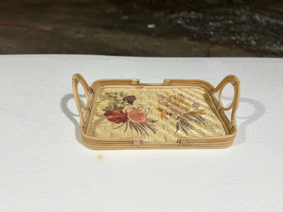 Best-seller Plateau en rotin naturel 2025 Face en bambou Nouveau design avec dessin personnalisé