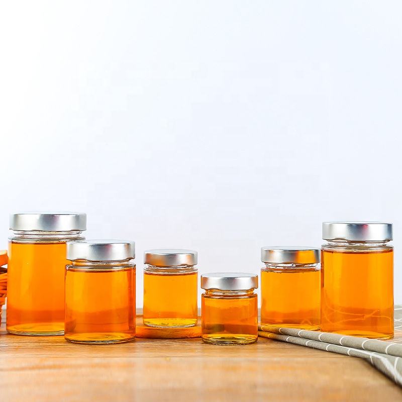 Best Seller 8 oz Straight Round clear Glass Jam Glass Honey Jars Gold Metal Lid Envases De Vidrio Para Miel