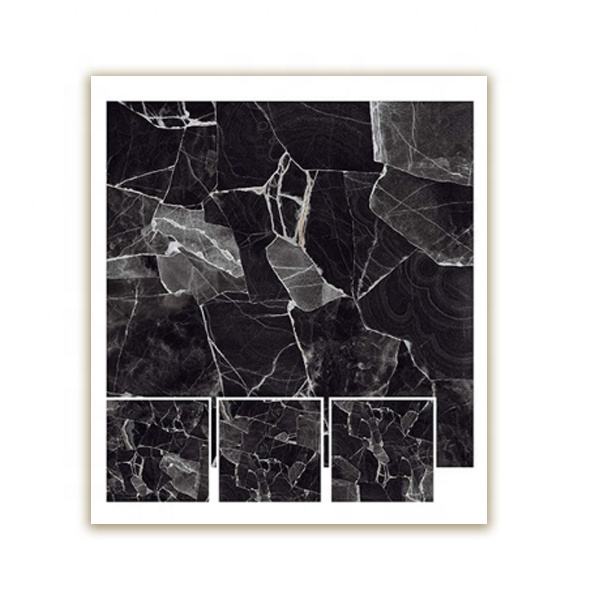 Meilleure vente 800X800 MM Carrelages de sol en porcelaine de forme carrée de style design moderne brillant Fusion Nero pour pièces intérieures