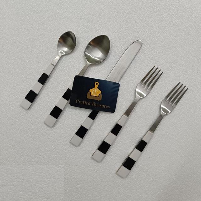 Best Seller Flateware Set Stainless Steel Cutlery Black & White Resin Handle Cutlery Set for Kitchenware Tableware At Best Price