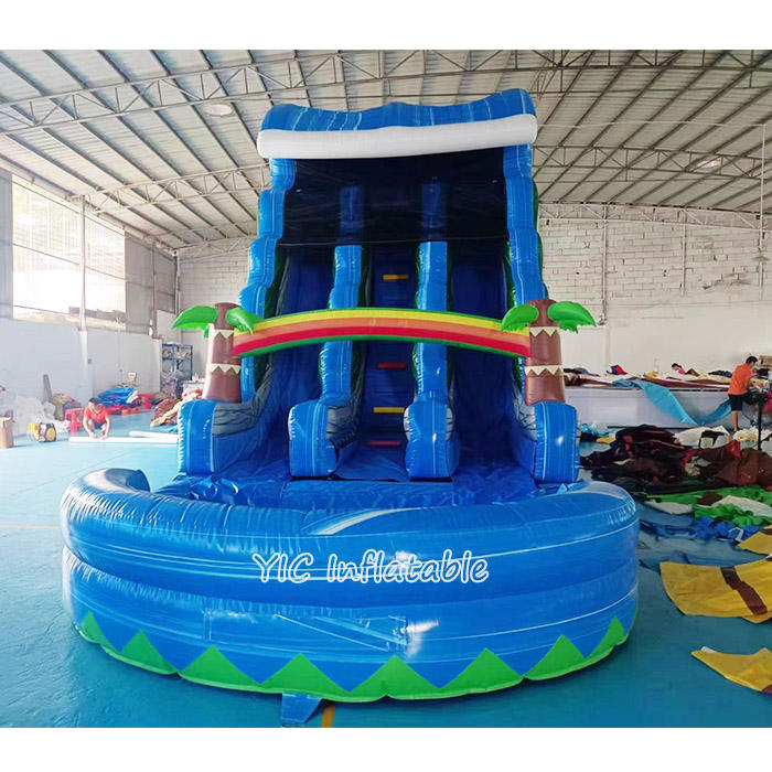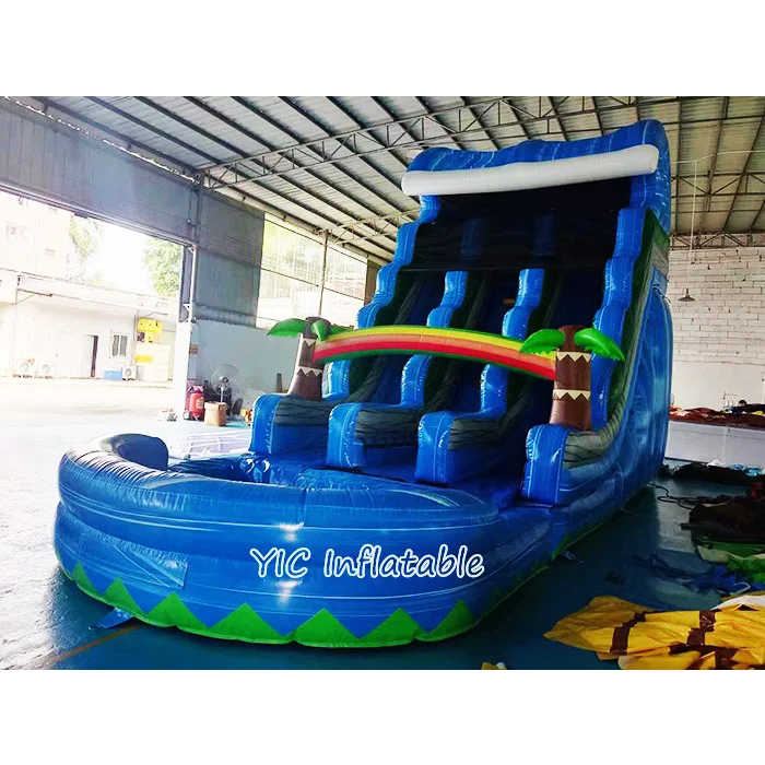 Meilleure vente toboggan gonflable avec palmier toboggan aquatique à double voie bleu arc-en-ciel avec piscine pour aire de jeux