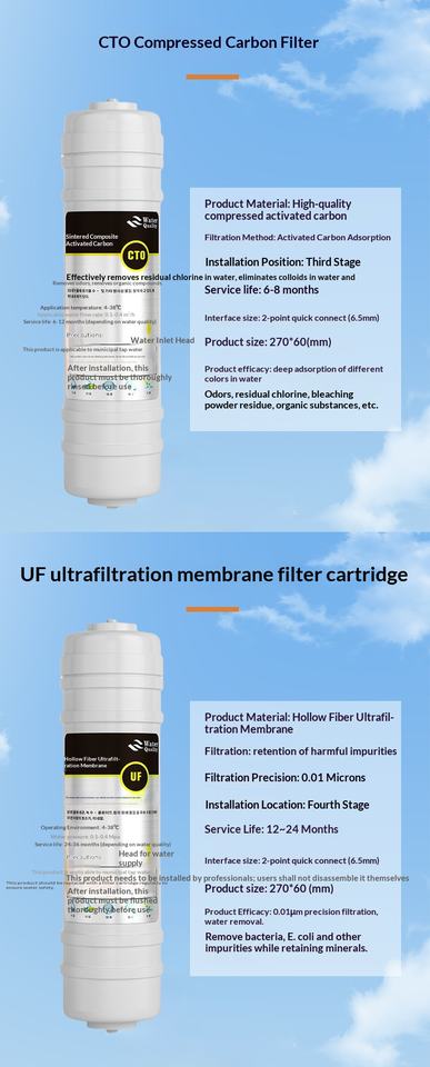Meilleures ventes - Cartouche de filtre à eau à ultrafiltration à trois étapes de style coréen à connexion rapide PP/UDF/CTO 10 pouces - Garantie de 6 mois