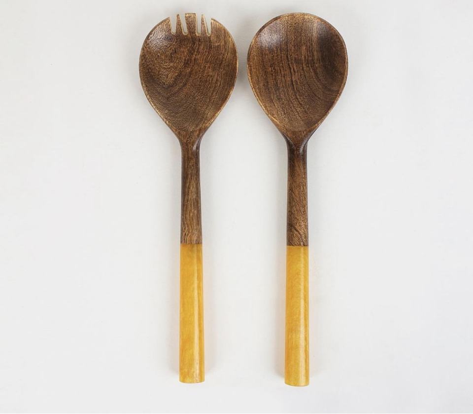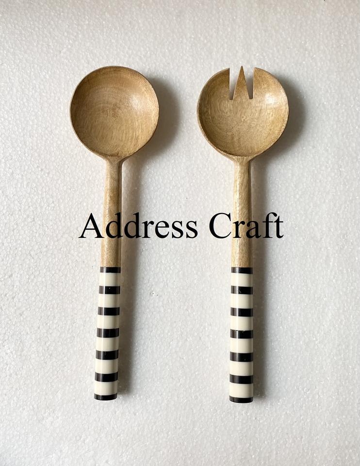 Meilleure vente Ensemble de serveurs à salade en bois de manguier avec poignée en résine Outils de service de haute qualité Outils à salade décoratifs au prix d'usine