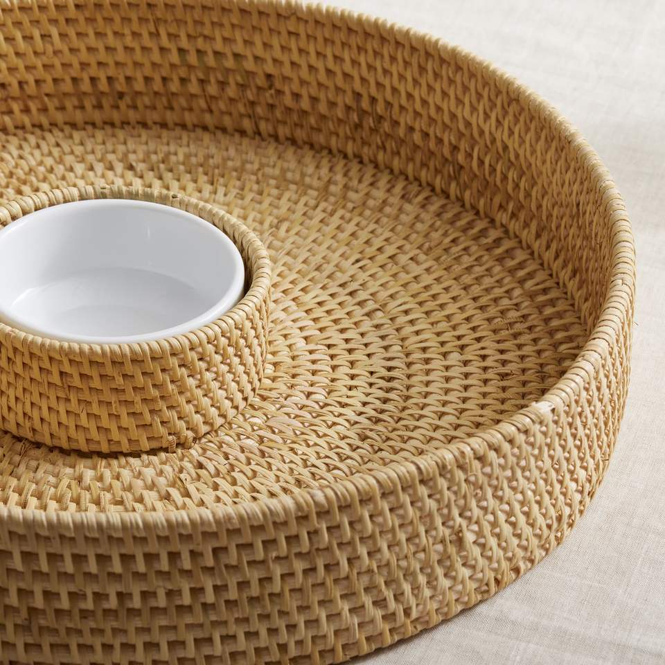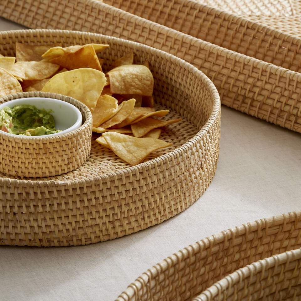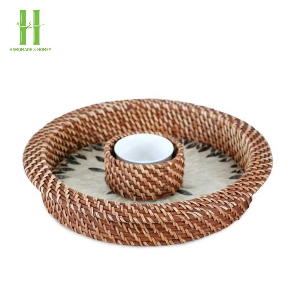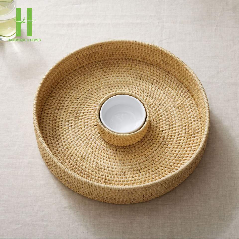 Meilleure vente plateau de service écologique en rotin déchiqueté personnalisable OEM rotin chargeur assiettes centres de table décoration