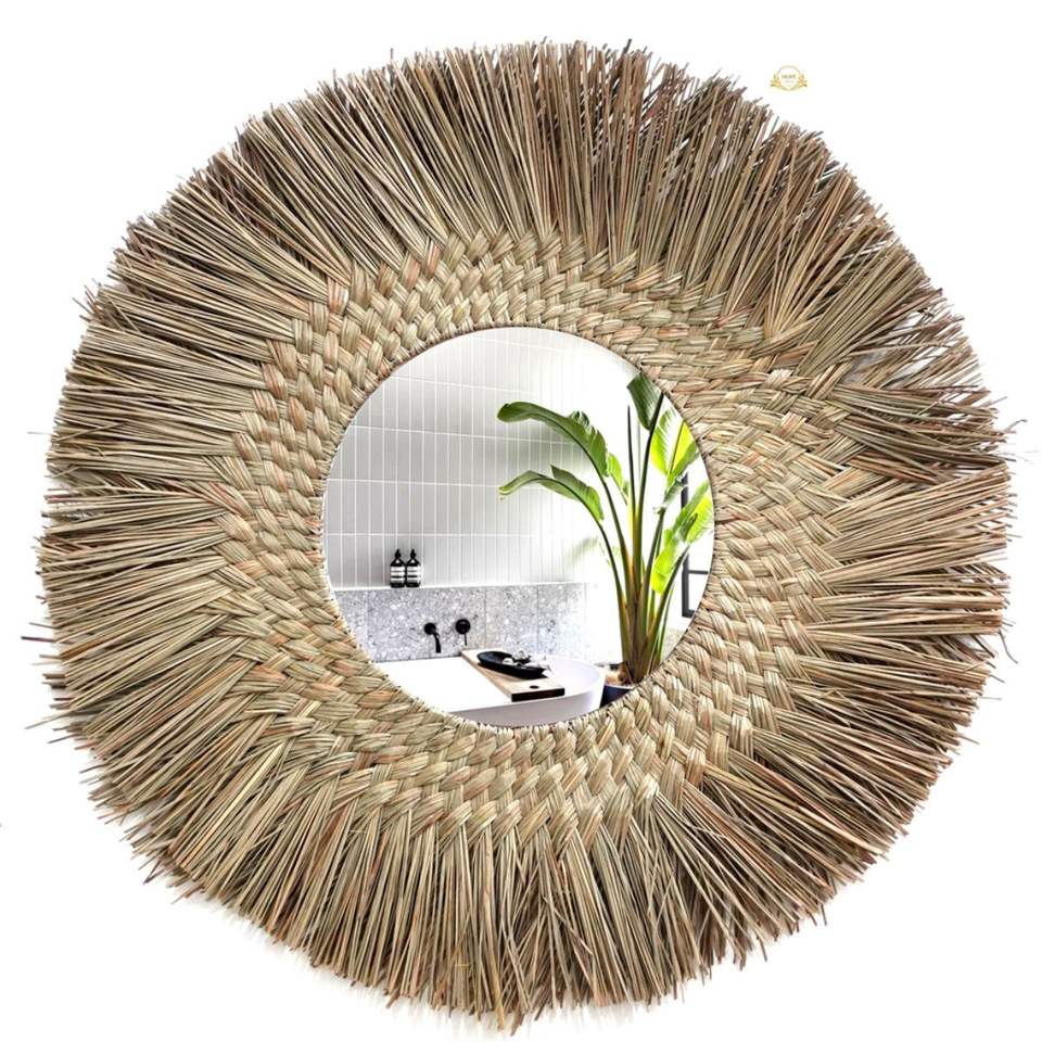 Meilleure vente miroir mural rond en rotin de haute qualité tissé à la main décor pour tropical et bohème chambre esthétique d'Indonésie