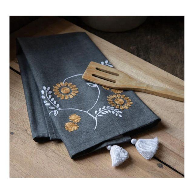 Meilleures ventes : Nouveauté Serviettes de cuisine 100% Coton Écologiques avec Logo Personnalisé, Gris Brodé, Design Élégant et Personnalisé pour Théière et Cuisine