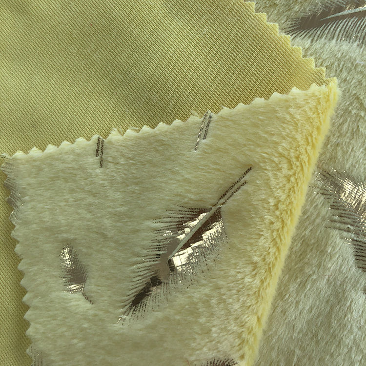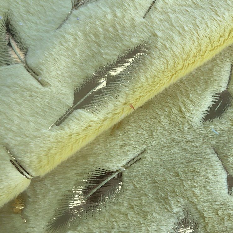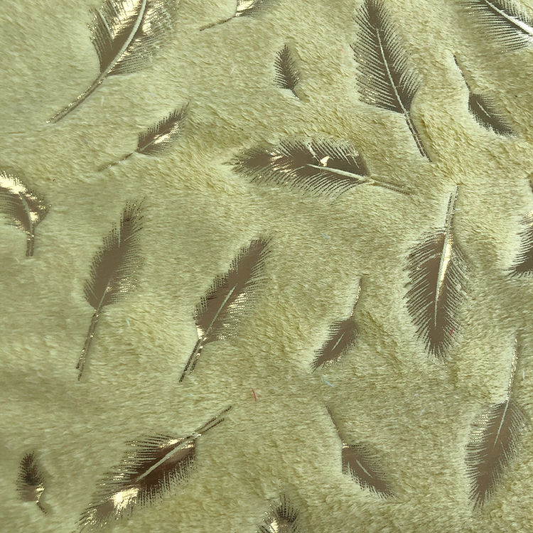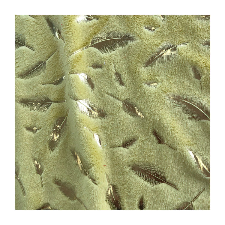 100% Polyester Feuille Impression Or Bronzé Minky Velboa Tissu