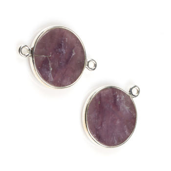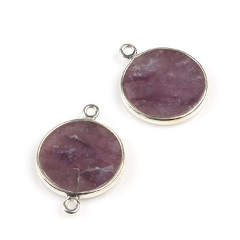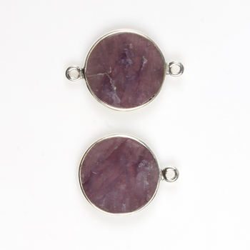 Product Name:Natural Lepidolite 12mm Round Silver Plated Charm Connector
