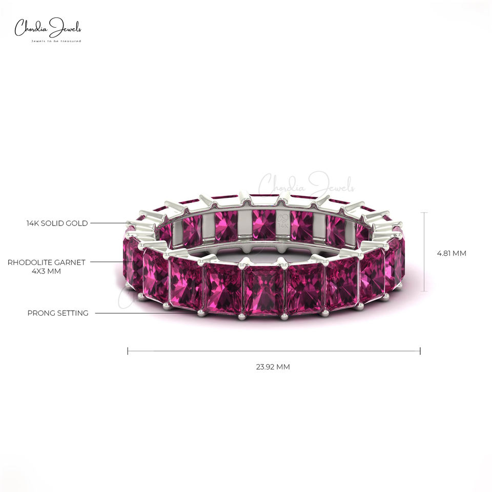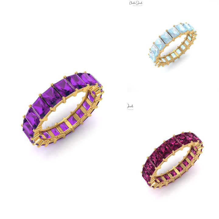 Meilleure vente Bague d'éternité en or massif 14 carats 4x3mm coupe octogone améthyste février pierre de naissance bague empilable prix de gros