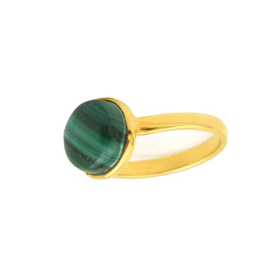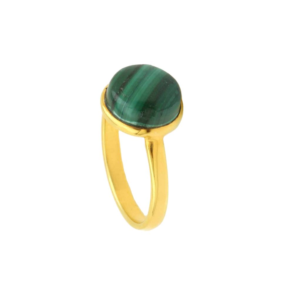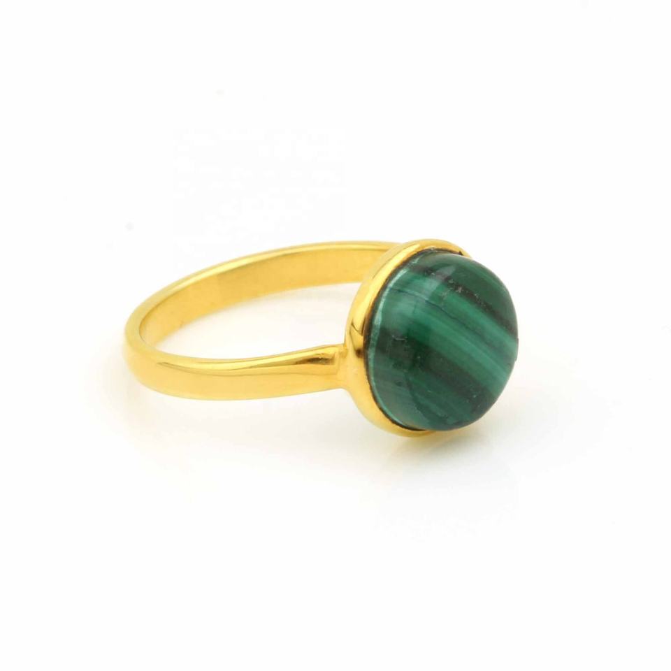 Product Name:Natural Malachite 925 Sterling Silver Gold Plated Gemstone Ring