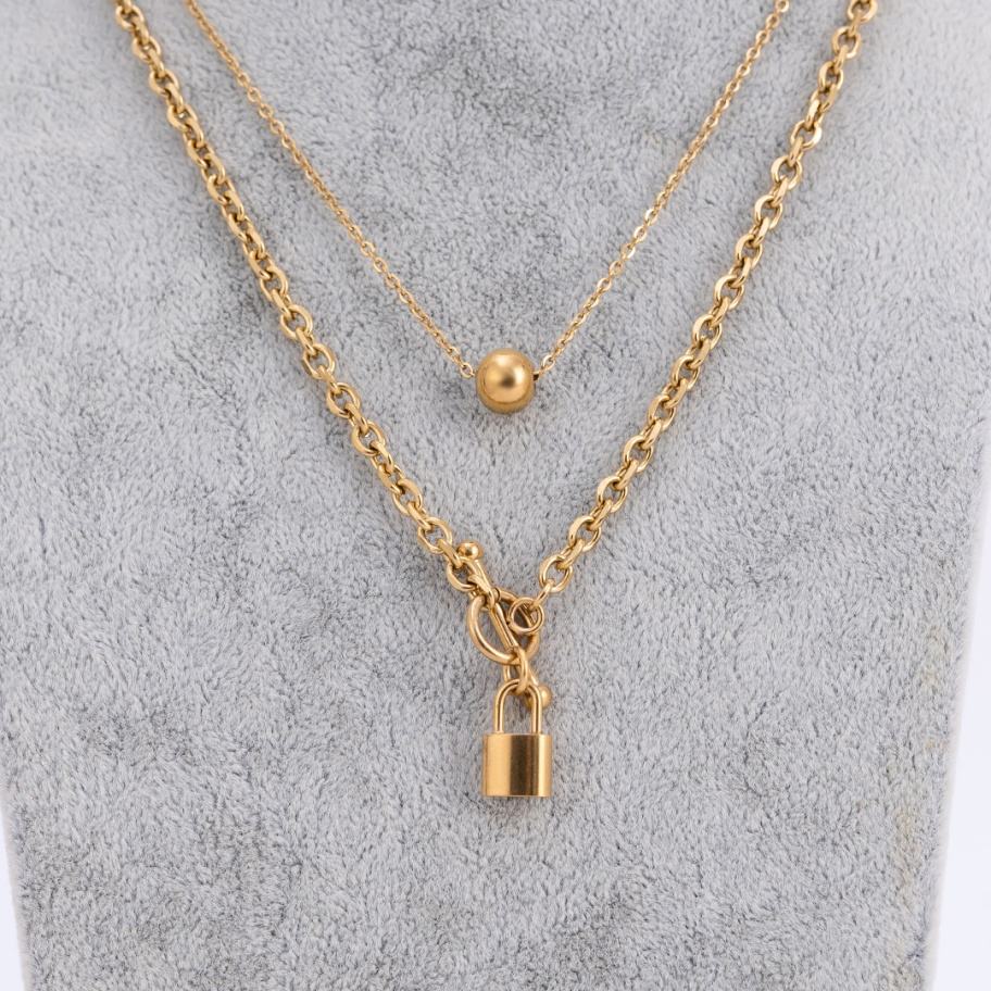 Collier ras du cou tendance pour femme en acier inoxydable 18 carats, style hip-hop, avec pendentifs boule et cadenas, best-seller
