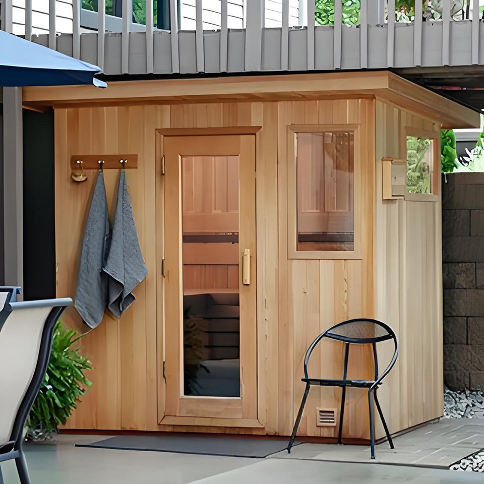 Sauna infrarouge extérieur moderne surdimensionné pour 2 personnes, best-seller, en cèdre rouge et cèdre d'Hemlock, bancs inclus, 9KW infrarouge lointain