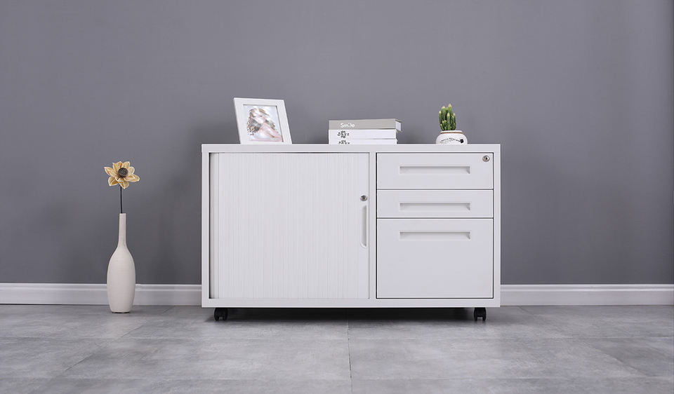 Classeur mobile en acier à 3 tiroirs avec roulettes au design moderne pour rangement à domicile et bureau