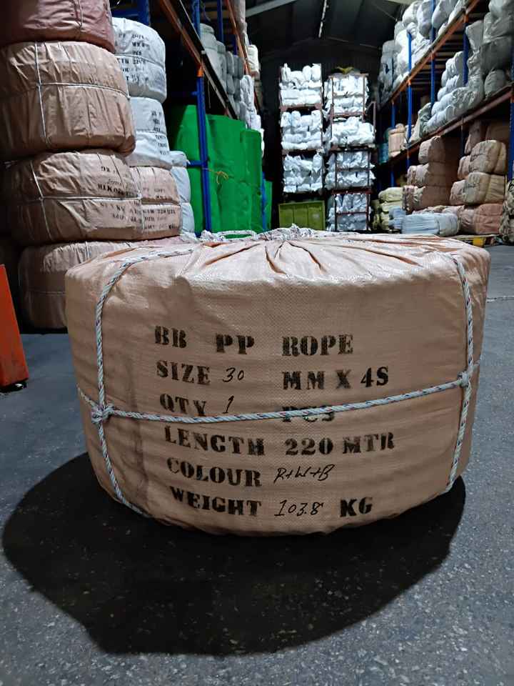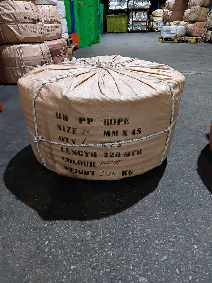 Meilleure vente 30MM * 4S * 220M haute résistance PP corde de pêche en rouge blanc bleu 103.80KGS par 1 pièce/sac pour emballage agricole