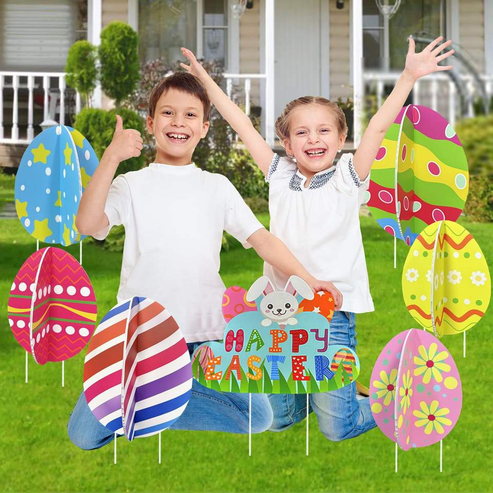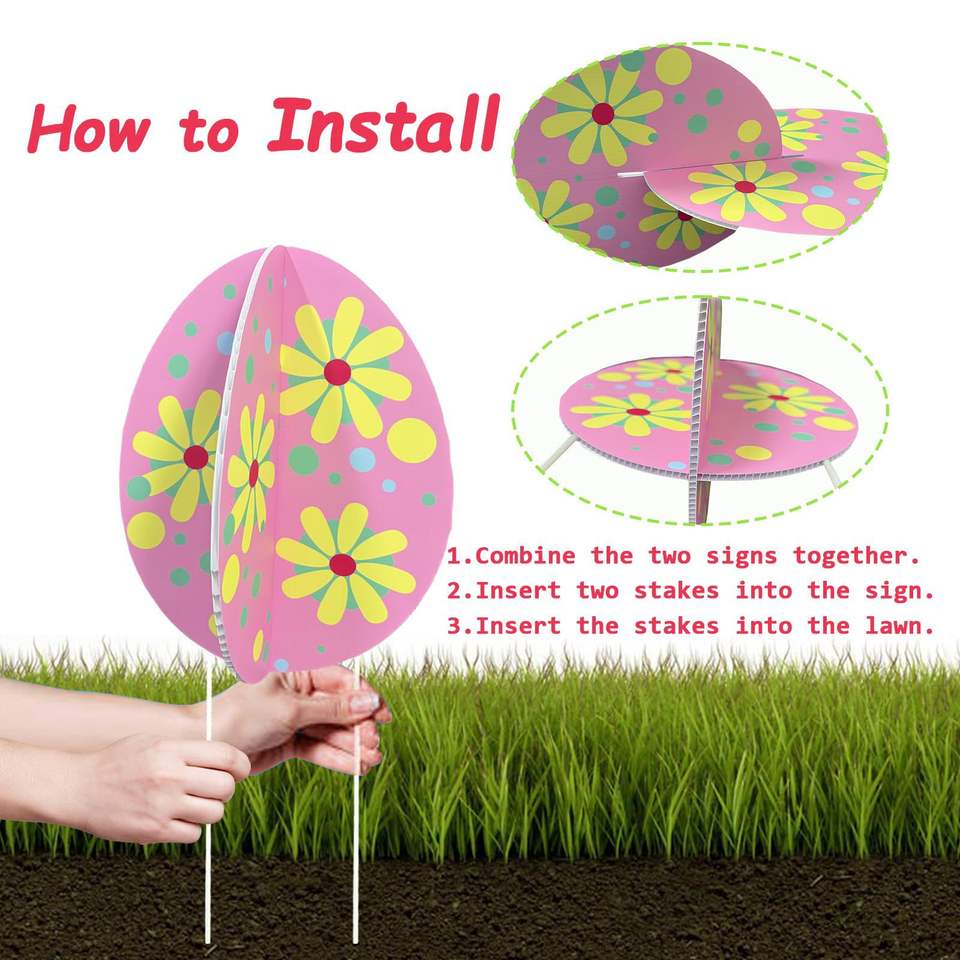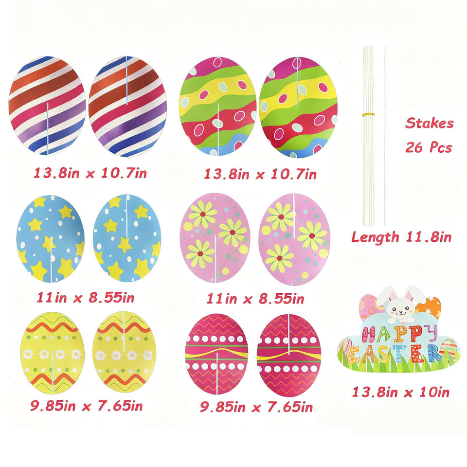Meilleures ventes : Panneau de jardin en plastique PP imprimé 3D double face en forme d'œuf de Pâques, Fournitures de vacances de Pâques transfrontalières