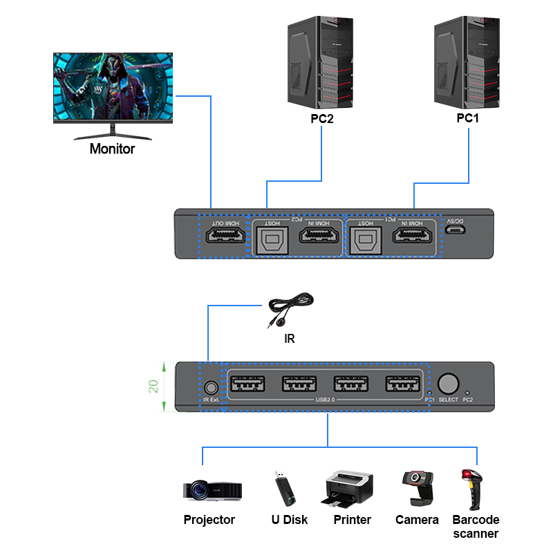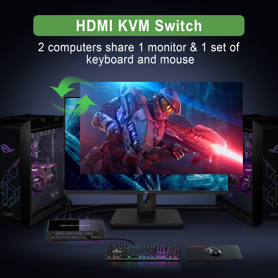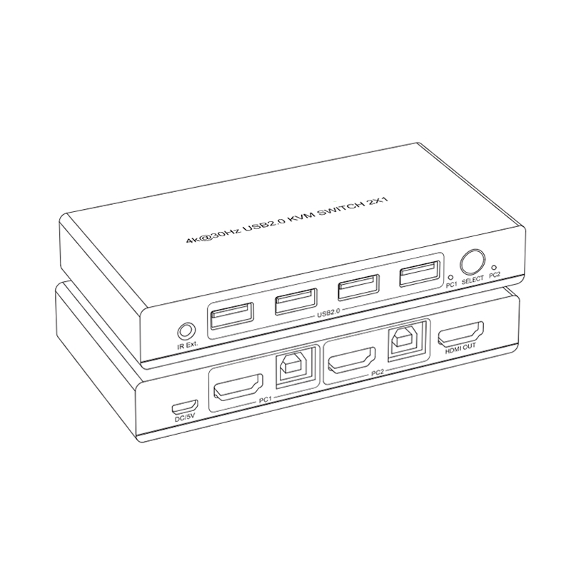Meilleure vente de commutateur kvm hdmi 4k bouton de support 2x1 télécommande IR prend en charge le commutateur kvm hdmi USB2.0