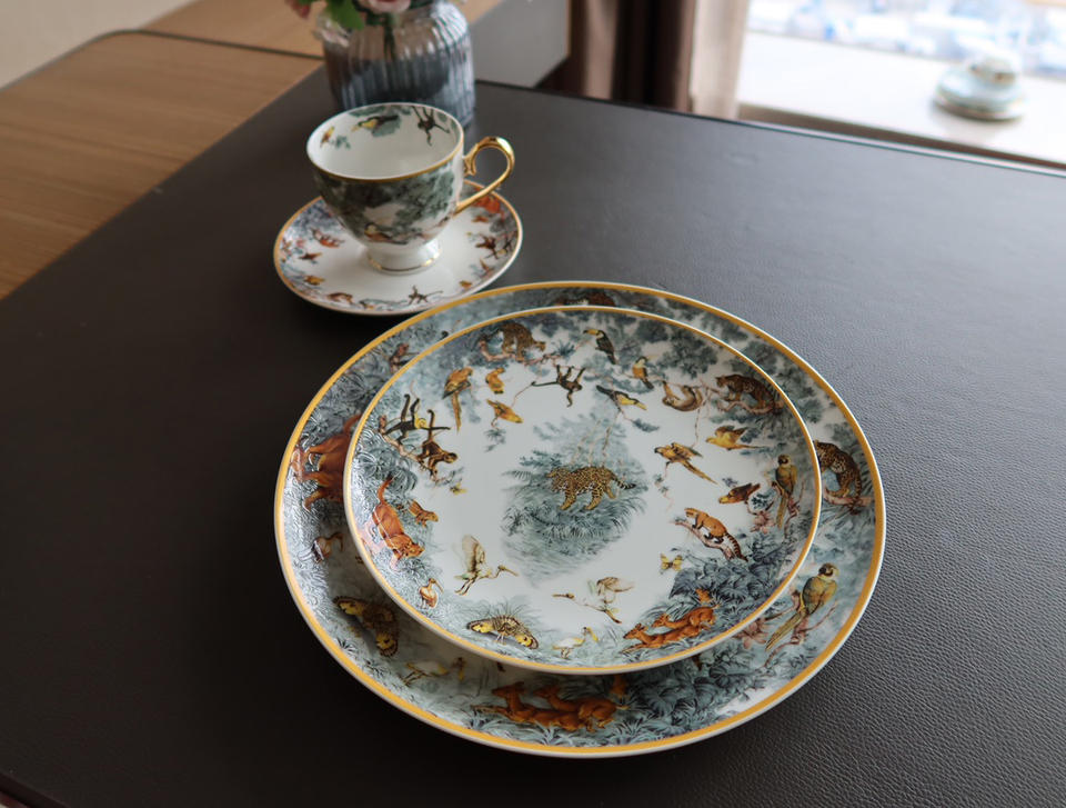 Best Selling 4pcs Nordic Luxury Jungle Animals Dining Room Sets Eco-Friendly Porcelain Dinnerware for Home Decor