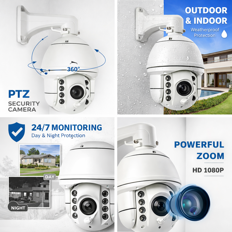 Vision nocturne, Détection de mouvement, Imperméabilisez/protégez contre les intempéries, PAN-TILT, Audio bidirectionnel, essuie-glace en option