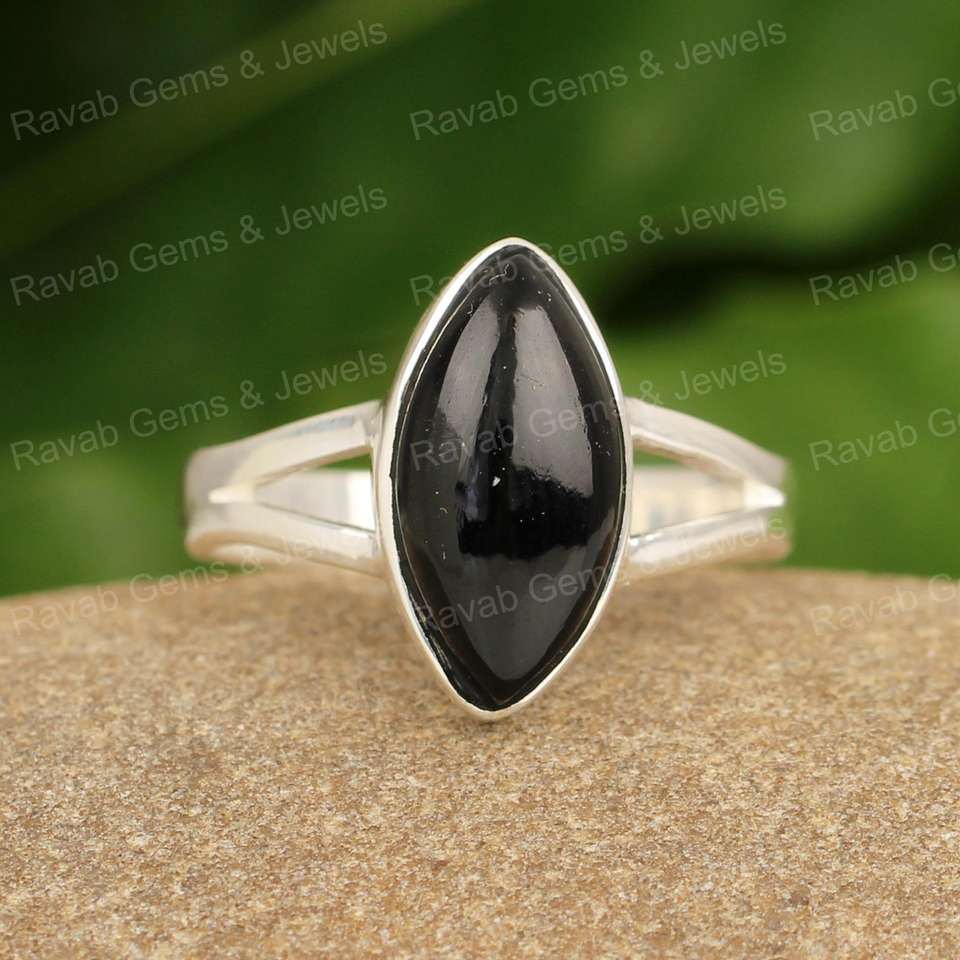 Meilleure vente bague de créateur en argent sterling 925 pour femmes de haute qualité en forme de marquise d'onyx noir véritable faite à la main pour la fête