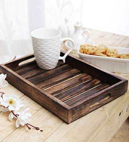 Plateau de service en bois d'acacia le plus vendu avec poignées, polyvalent pour la décoration de la maison, de la cuisine et des restaurants