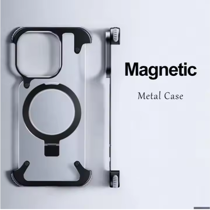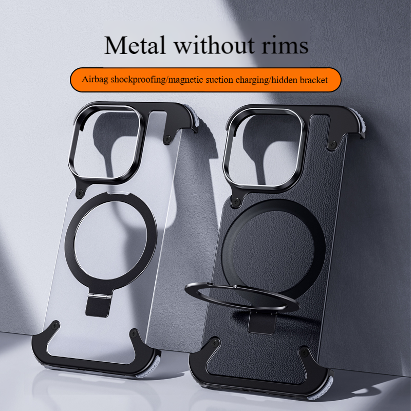 Meilleure vente Support métallique caché anti-chute Étui d'affaires anti-collision Chargement sans fil pour iPhone 15 14 13 Pro Max Cover