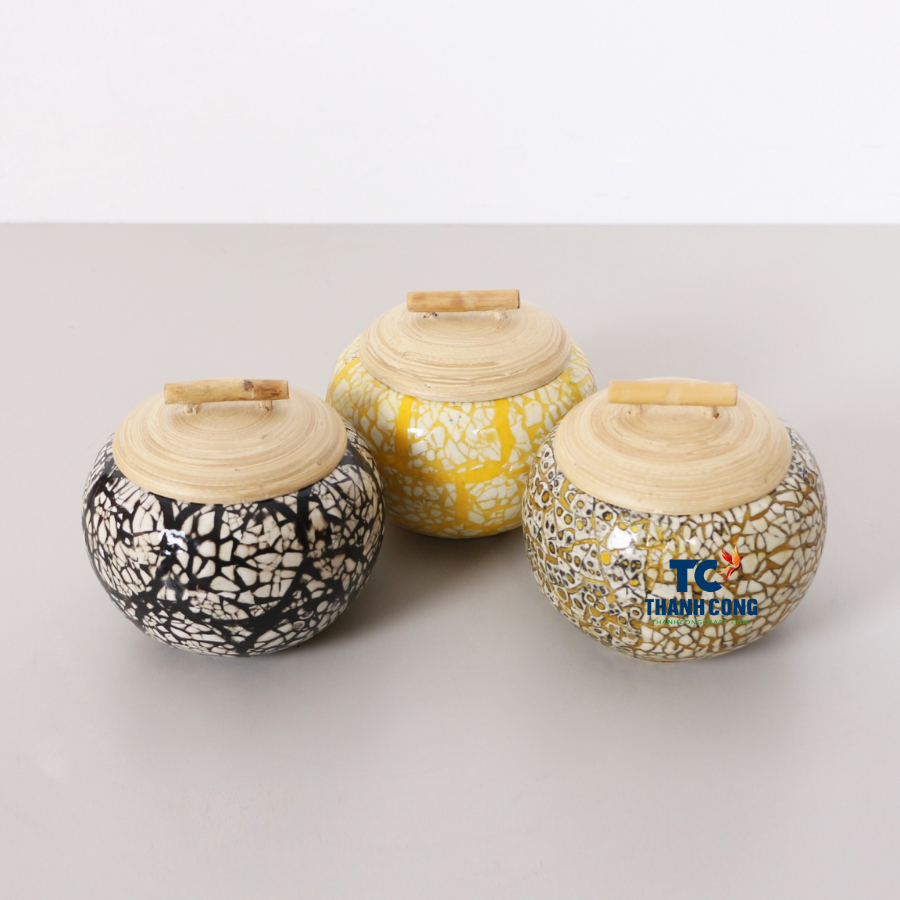 Boîte en bambou avec incrustation de coquille d'oeuf