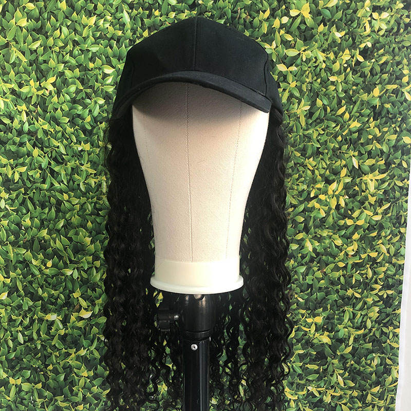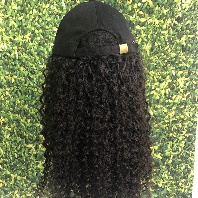 Meilleure Vente Casquette de Baseball Chapeau Perruque En Gros Pas Cher Voyage Perruque Chapeaux Femmes Casquette Brésiliens Bouclés Perruques De Cheveux Humains Avec Des Chapeaux