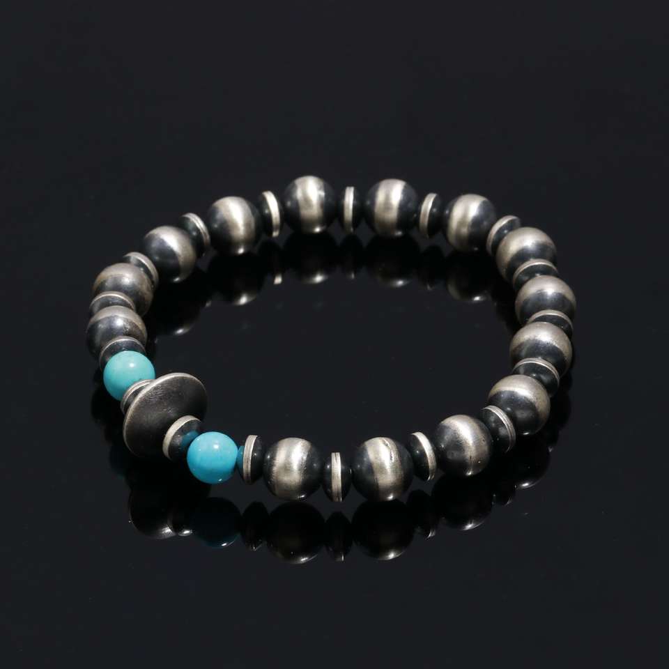 Meilleure vente beau Navajo naturel bleu Turquoise Bracelet en perles fait à la main Navajo perles en vrac Bracelet en perles en argent Sterling